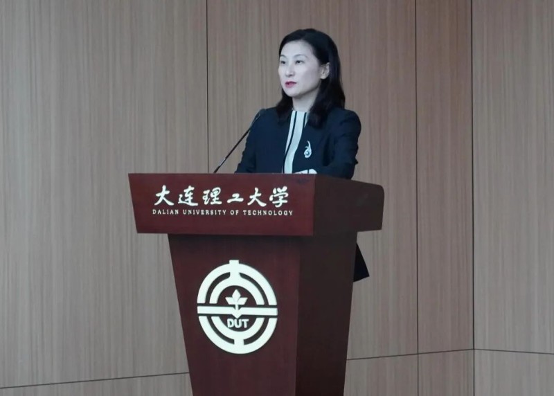 大连理工大学建筑与艺术学院党委书记金玲讲话,她期望同学们学会知恩感恩,强化家国情怀,能够全面发展和多元成才,并鼓励同学们强化创新意识和能力,将创新成果转化为对国家和社会有益的实效性成果。