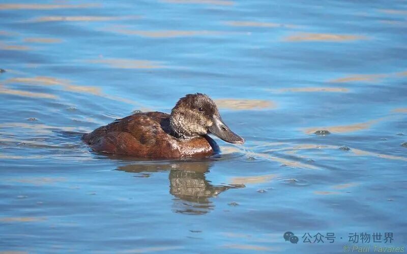 南美硬尾鸭,也被称为湖鸭、阿根廷湖鸭、阿根廷蓝嘴鸭等,长度为36-46厘米,重量为510-850克,雄性较大。