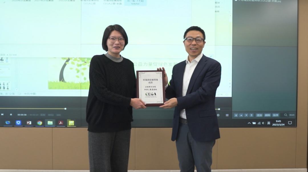 本次论坛特别为CEGA新成员北京绿色阳光环保公益基金会举行了线下授牌仪式。北京绿色阳光公益基金会代表李妙婷表示,接下来绿色阳光将全力投入气候变化议题,很感谢CEGA开放热烈地拥抱了绿色阳光,期待和大家一起推动气候领域的发展。