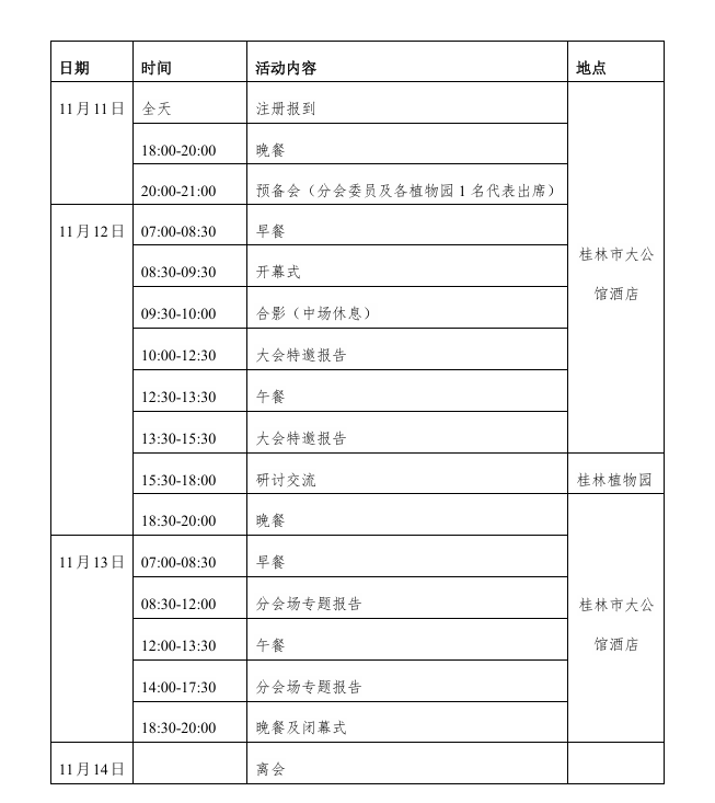 为全面推进美丽中国建设,构建人与自然和谐共生的现代化,建立国家植物园体系,筑牢生物多样性保护网络,进一步推动新时代中国植物园高质量发展,2025年植物园学术年会定于2025年11月11-14日在广西壮族自治区桂林市举办,诚邀植物园及相关单位工作者前来交流。